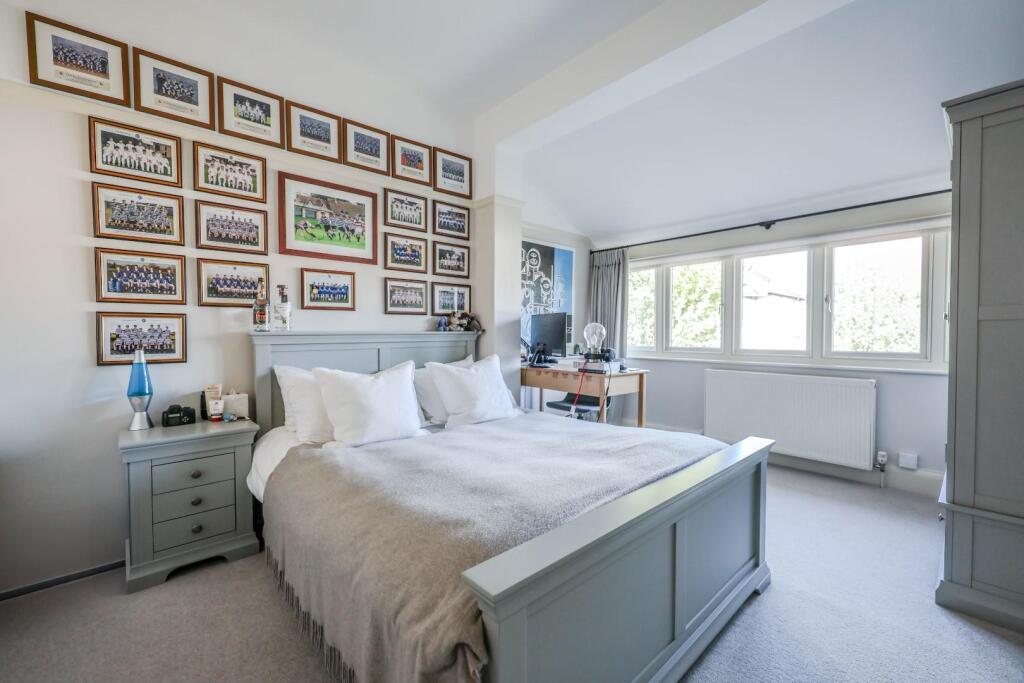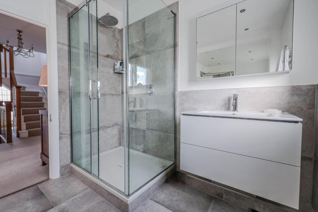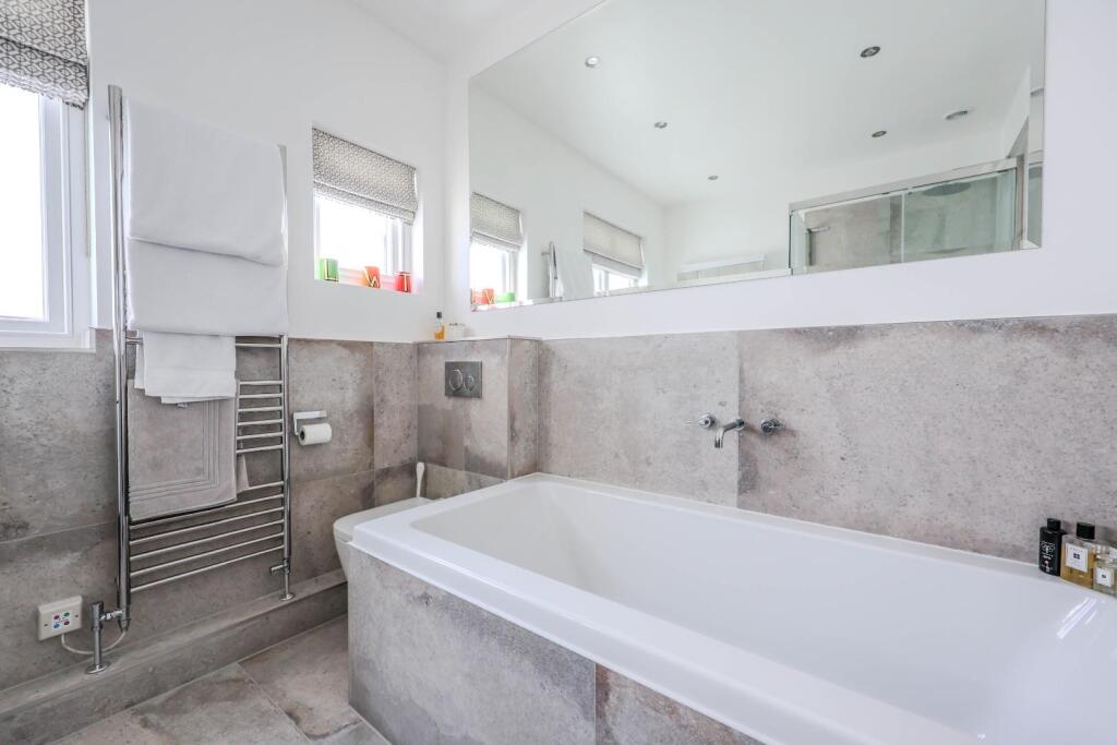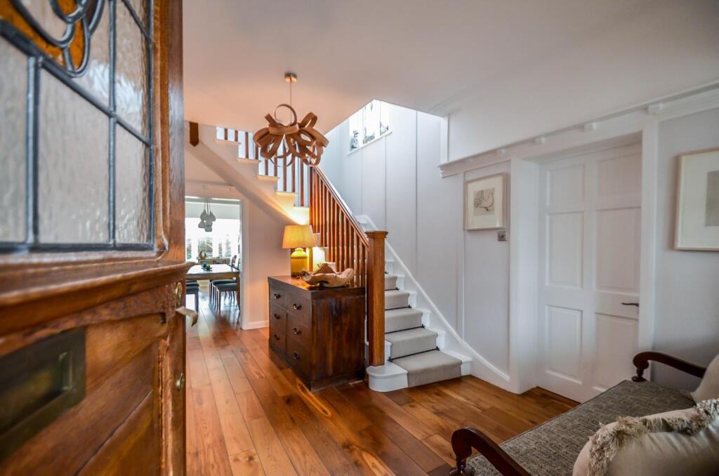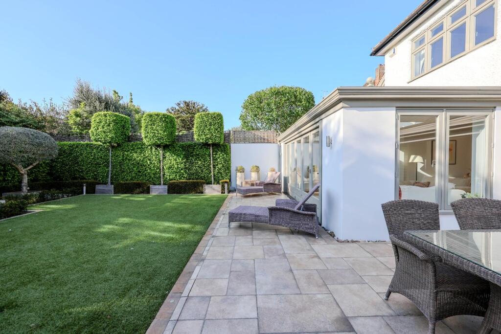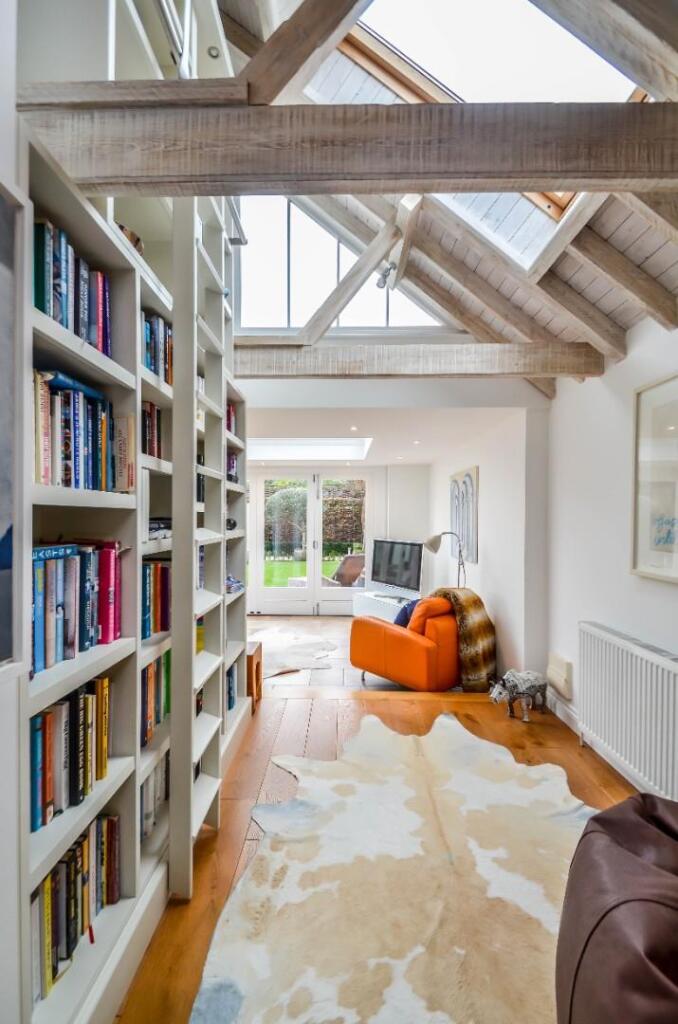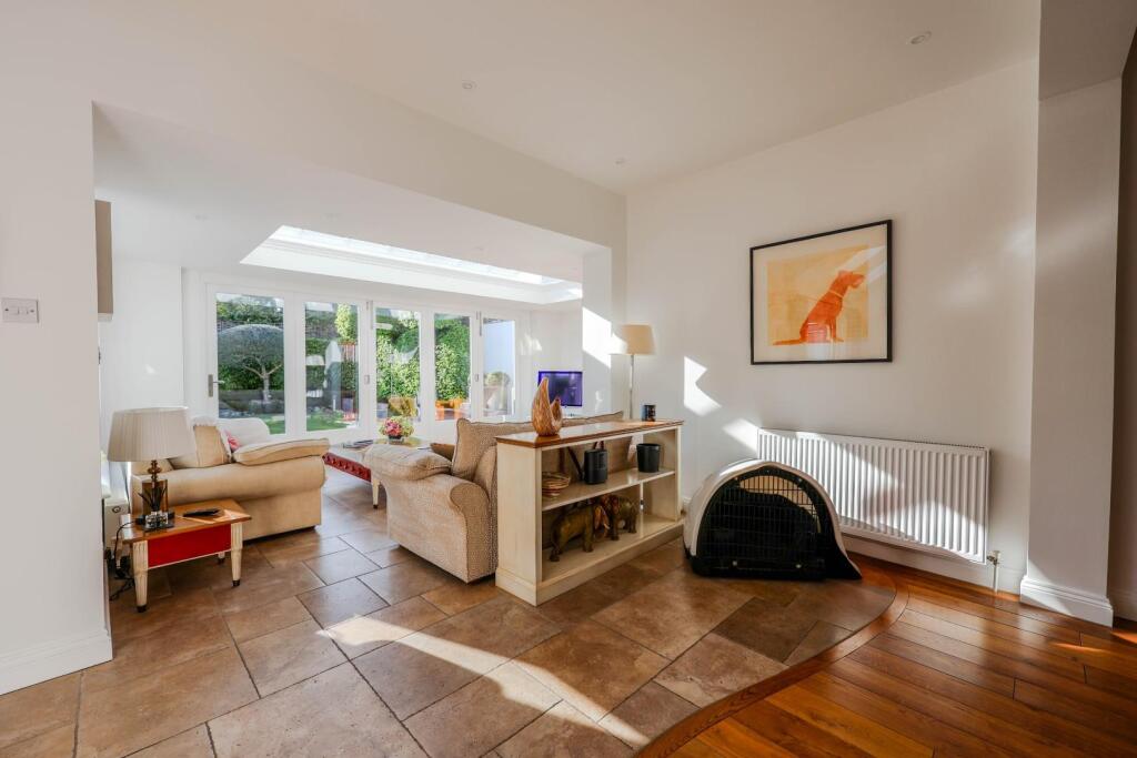 The images reveal a property that has undergone significant modernisation and extension. The interior is presented in excellent condition, with high-quality fixtures and fittings throughout. The extension appears to be a large, well-designed addition that maximises natural light and provides ample living space. The property benefits from a substantial, well-maintained garden, adding to its appeal. The overall impression is one of a high-specification, modern home in a prime location.