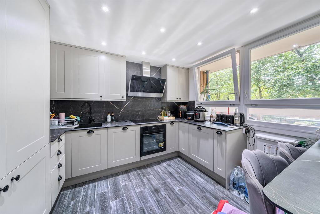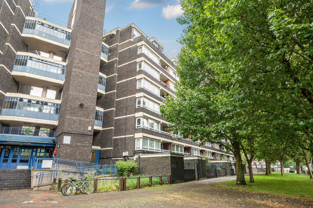 The property is a 3-bedroom apartment located on John Ruskin Street in Southwark, London. The location benefits from being near several schools and transportation options. Based on the images, the apartment appears to be in good condition, with a modern kitchen and bathroom.