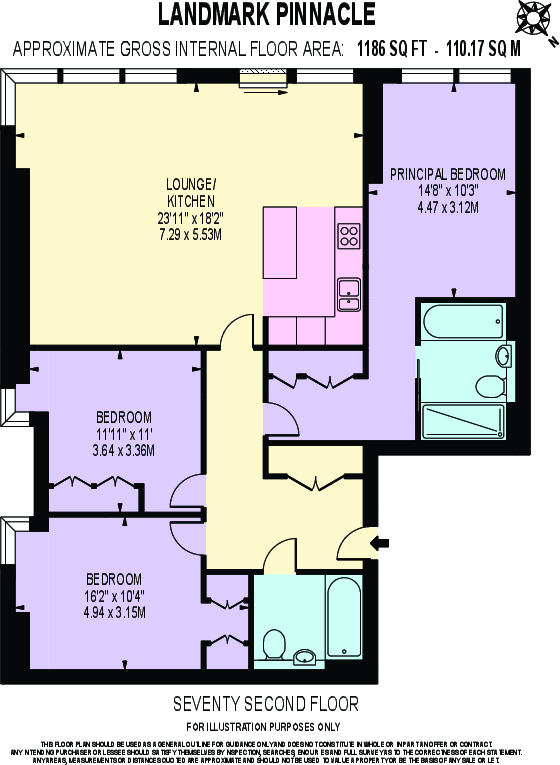 3 bedroom apartment to rent in Landmark Pinnacle, Canary Wharf E14 Knight Frank are pleased to offer this 72nd floor South and West facing apartment within the Landmark Pinnacle development. The apartment is set over approximately 110.17 sq m (approximately 1,186 sq ft) and offers reception roo...