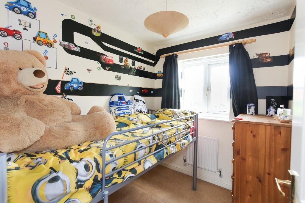 A newly decorated family home tucked away in a small cul-de-sac in a well regarded development in close to primary schools, shops, pub & parkland. Brand new kitchen, lounge/dining room, cloakroom, bathroom, new flooring thought out, good sized gardens, two parking spaces & no chain.