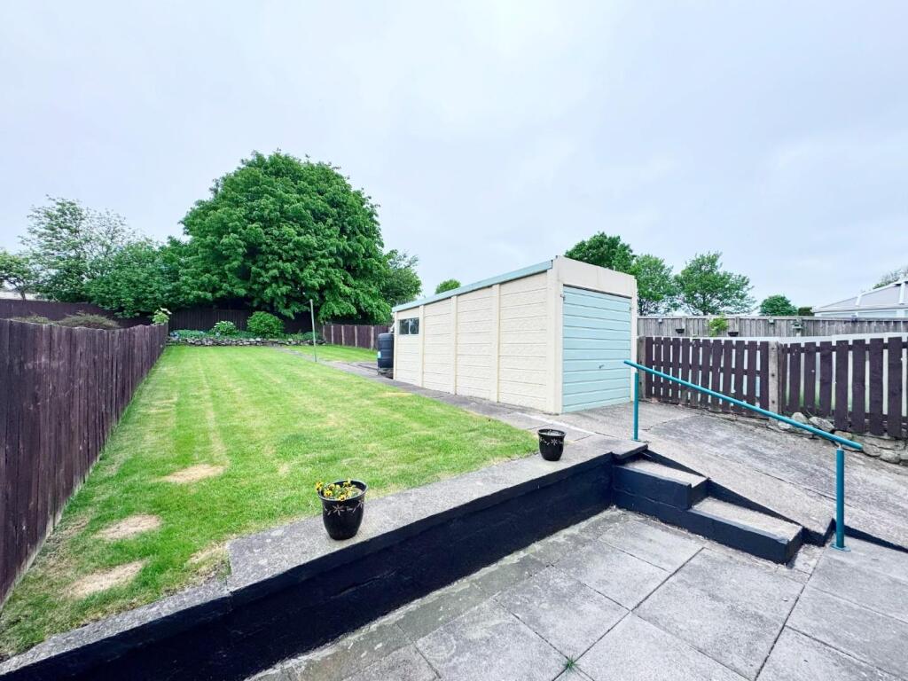 The property includes a garden, which is a desirable feature. The garden looks relatively easy to maintain and offers some outdoor space. There is also a garage.