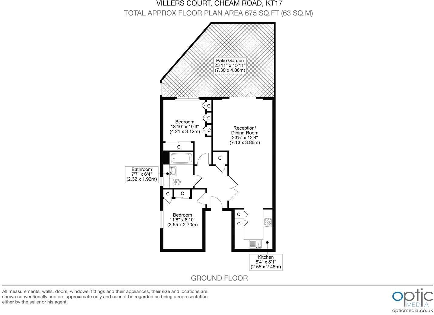 This is a two-bedroom flat located on Cheam Road, Epsom. The property benefits from its proximity to local amenities, schools, and transportation links, including Ewell East station. The flat itself appears to be in good condition, with modern fixtures and fittings. A notable feature is the inclusion of a patio area, providing private outdoor space. While the price per square foot is above the local average, the overall condition and desirable location contribute to its appeal.