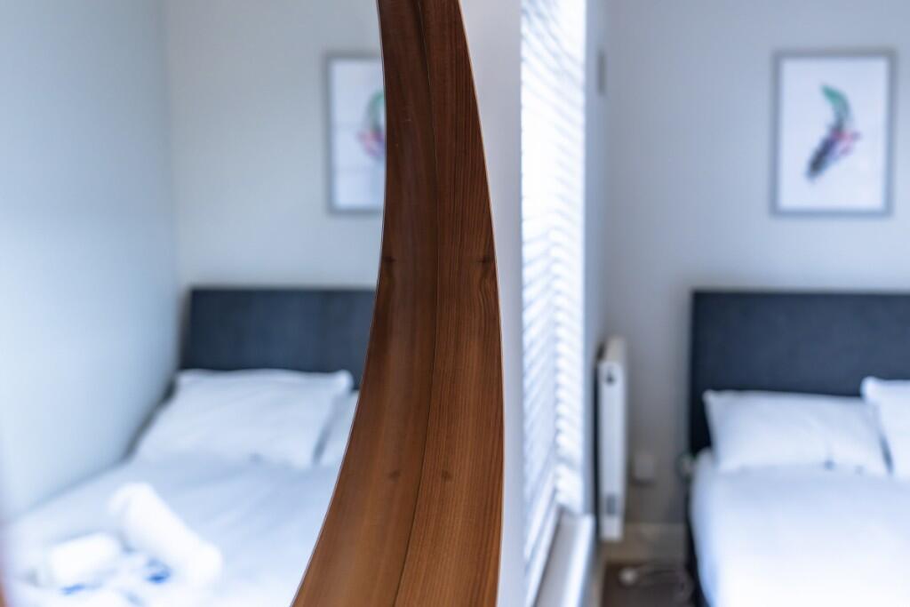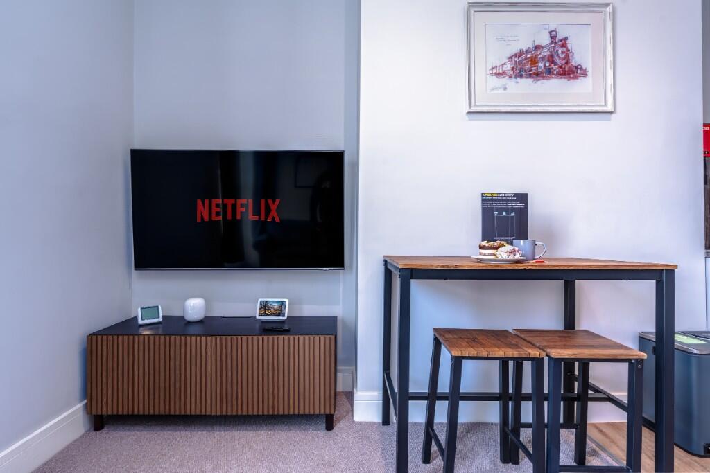 Stay in a stylish two-bedroom first-floor apartment on Cheltenham Road, featuring a mural by Andrew Burns Colwill. Enjoy smart home tech, high-speed Wi-Fi, concierge services, and a personal service app. Located near Stokes Croft, cafés, and Bristol's top cultural attractions.