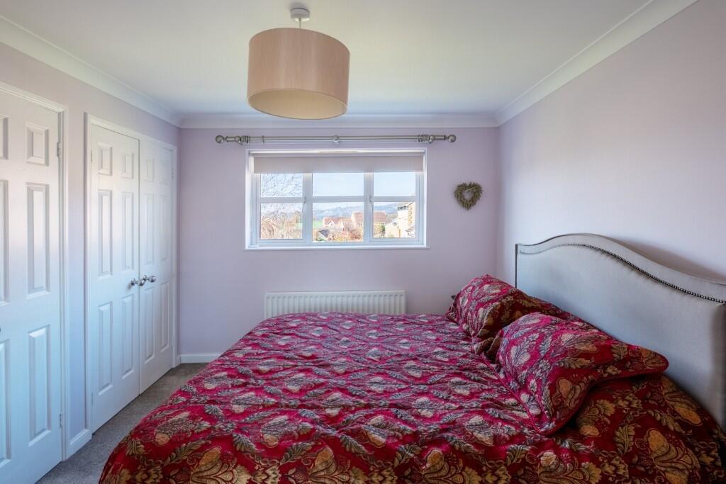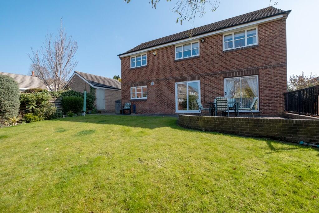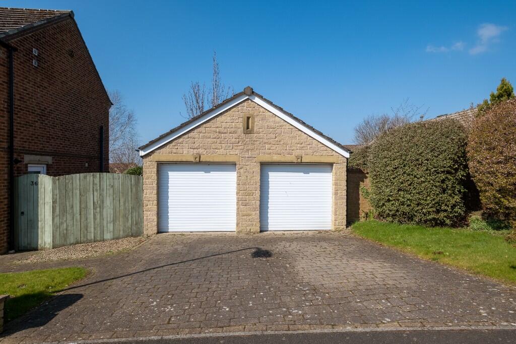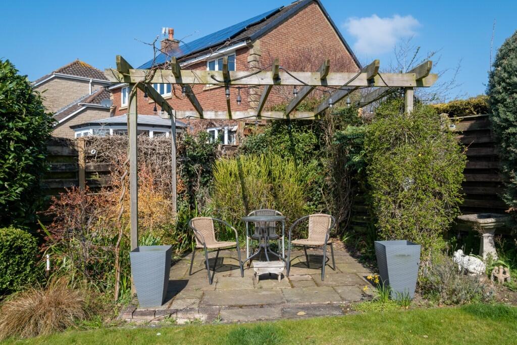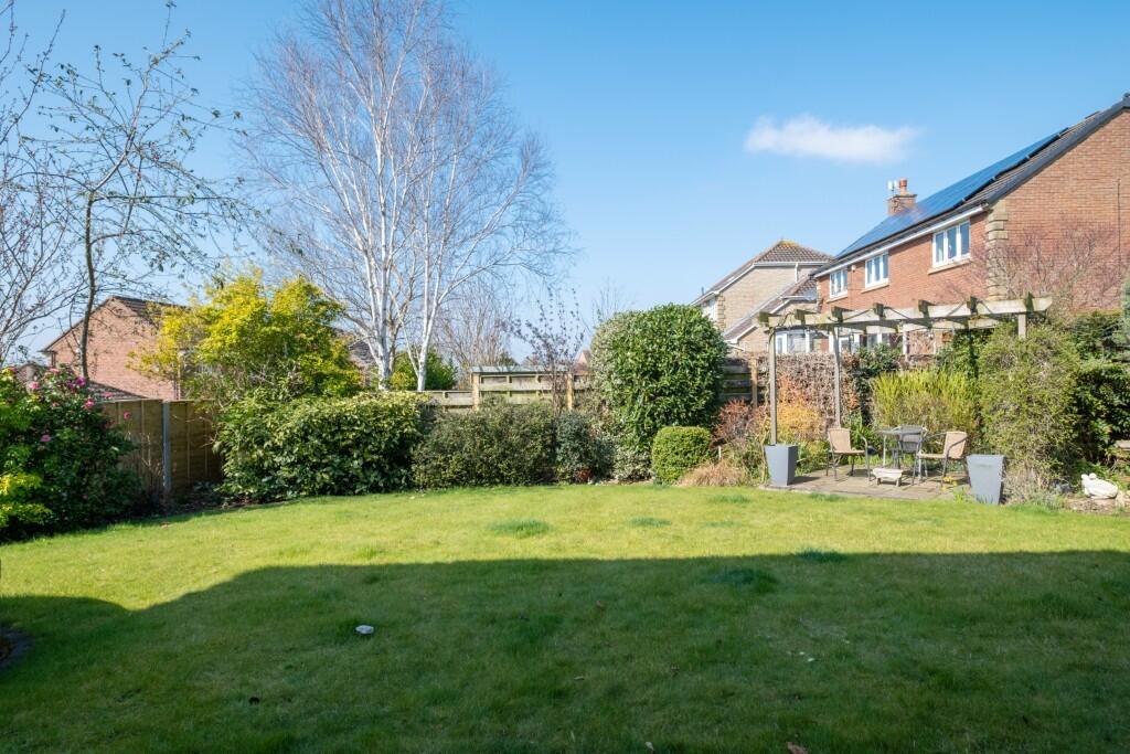 The property includes a sizeable garden, offering ample outdoor space. The garden is well-maintained and features a patio area, ideal for outdoor entertaining. The presence of a double garage provides additional storage space.