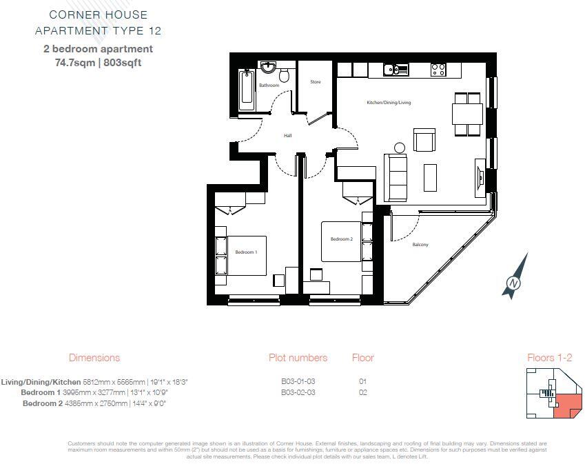 3 Corner House is a two bedroom first floor apartment measuring 803 sq ft with private balcony. SHOW HOME AVAILABLE TO VIEW!!