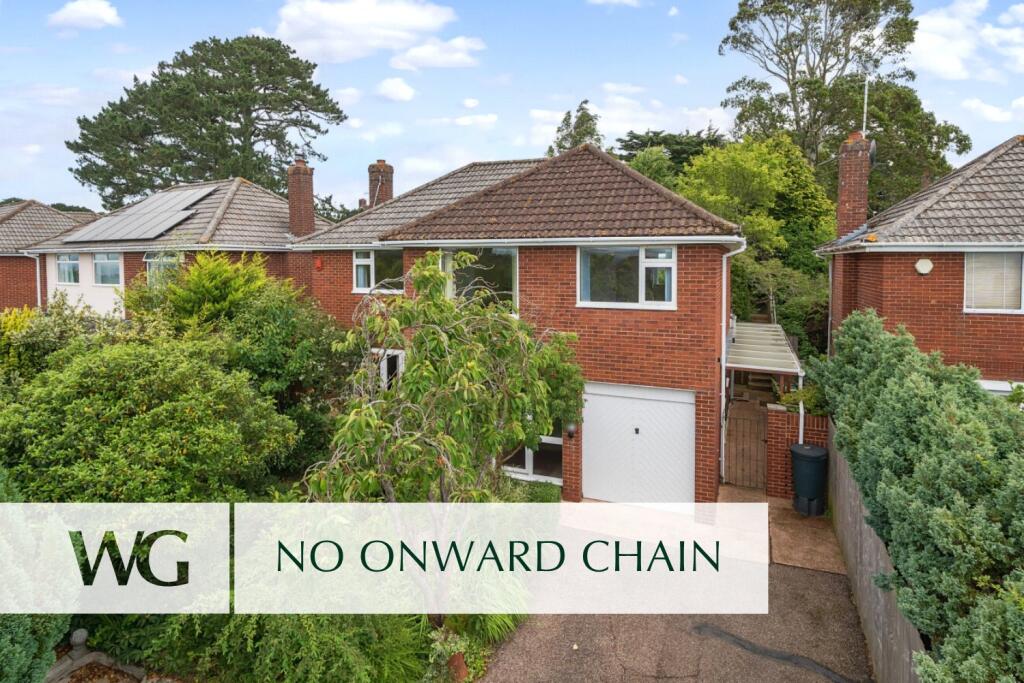 A spacious FOUR BEDROOM detached house in a QUIET CUL-DE-SAC near Exeter city centre and the university. Two reception rooms, STUDY, Kitchen with breakfast bar, EN SUITE, Utility, Bathroom. PARKING for 2-3 cars, delightful LARGE REAR GARDEN with sheds and greenhouse, superb VIEWS. NO ONWARD CHAIN.