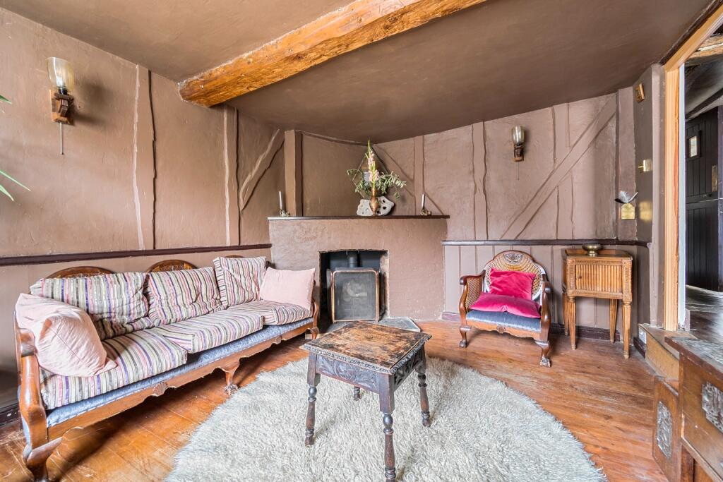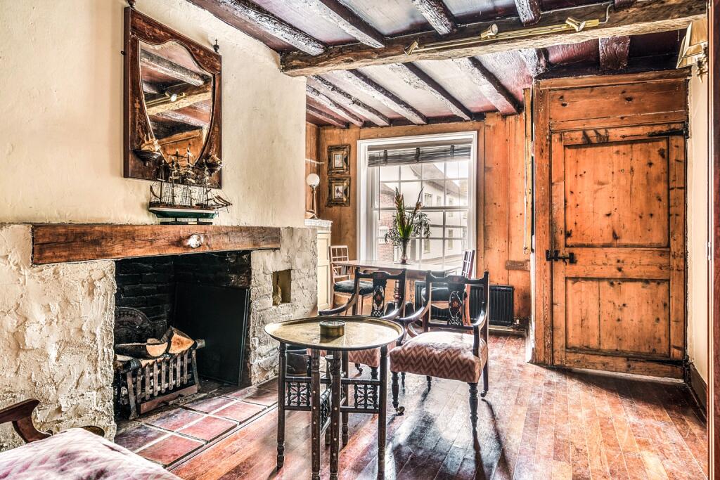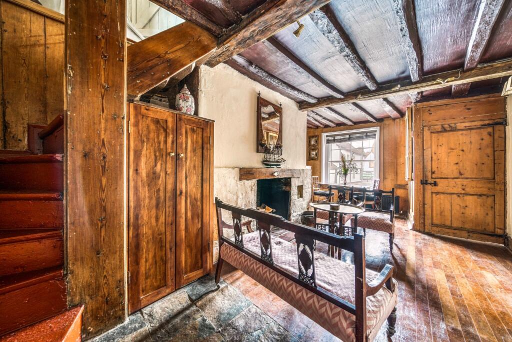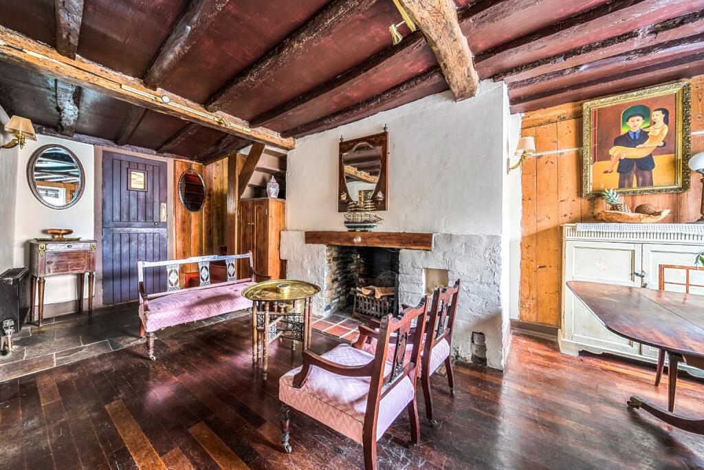 This is a two-bedroom end-of-terrace property located on High Street in Sandwich, Kent. The property retains many of its original features, giving it a traditional feel. The interior includes exposed beams and fireplaces. While the property is in a good location, close to schools and transportation, it appears to be in need of some modernisation. The property includes a small courtyard. The asking price of £320,000 appears reasonable when compared to other properties in the area.