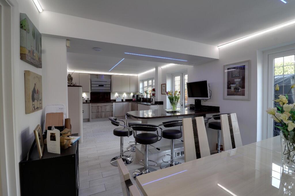 The property is located in Petworth Close, Longmeadow, Stevenage, Hertfordshire. Longmeadow is a residential area, and the proximity to several schools (Longmeadow Primary School, Shephalbury Park Primary School, and Barnwell School) makes it attractive to families. The presence of nearby transportation links, including several train stations within a reasonable distance, adds to its convenience. Based on the provided images, the property appears to be in excellent condition. The interior is modern, well-maintained, and recently renovated or updated. The kitchen and bathrooms are particularly striking, showcasing high-quality fixtures and finishes. There is no visible evidence of wear and tear or the need for repairs. The property includes a well-maintained garden with a patio area, providing ample outdoor space. The garden appears to be of a reasonable size for a property of this type, suitable for relaxation and entertaining. The list price of £650,000 is significantly higher than the average house price in the area (£403,847). However, considering that comparable nearby detached properties on Petworth Close have sold for prices ranging from £280,000 to £489,950, the price may reflect the property’s superior condition and modern updates. The lack of square footage data for the subject property makes a precise price per square foot comparison impossible, but the higher price might be justified by the extensive renovations and overall high quality of the property. A detailed analysis comparing the subject property’s features and condition to those of similar properties in the area would be necessary for a definitive assessment of its value.