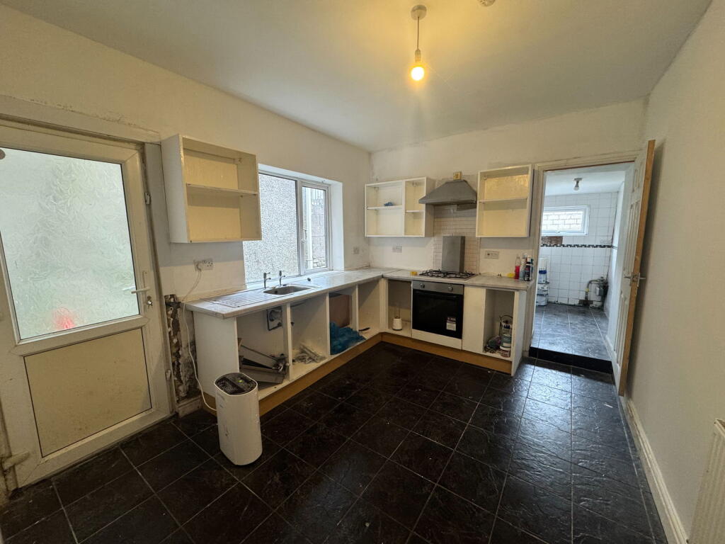 This property is a 4-bedroom, 1-bathroom terraced house located in Maesteg, Mid Glamorgan. The property is listed at £100,000 and has a plot size of 0.00 sqft. The average house price in the area is £209,177, with an average price per sqft of £226. This property is significantly below average in price. The property appears to be in need of some modernisation and updating, as seen in the images. There is a small garden to the rear of the property. The location is within reasonable proximity to schools and transportation links.