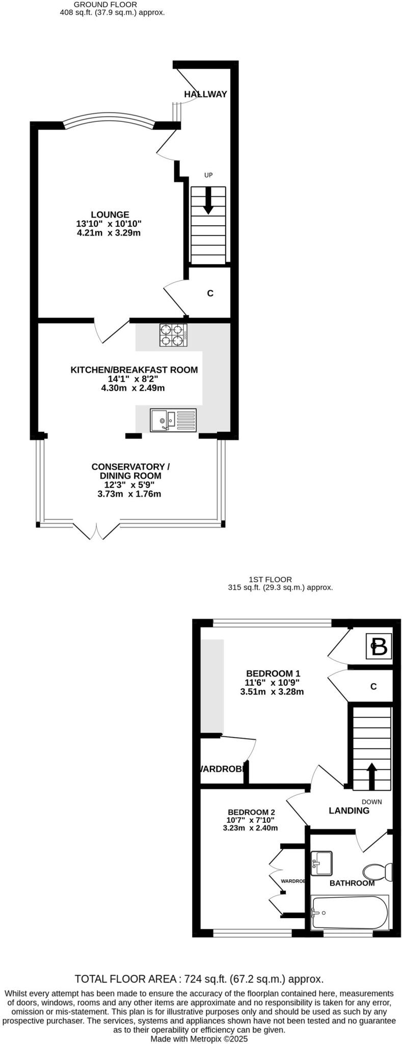 The property is a 2-bedroom, 1-bathroom terraced house located in a family-friendly area with good schools and convenient transport links. The house seems to be in good condition, with a recently updated kitchen and bathroom. The conservatory and garden are added benefits. While the price per sqft is slightly above average for the area, it is not unreasonable considering the condition and additional features. Nearby comparable properties provide a mixed range of prices, making a definitive price comparison difficult without additional sqft data.