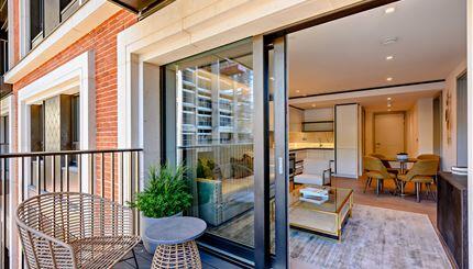 A luxurious interior designed two-bedroom 2nd floor apartment set over 764 sqft, comprising a large open-plan reception room leading onto a private balcony. The fully integrated kitchen with appliances from Siemens and Miele including oven and induction hobs, large fridge freezer and dishwasher a...