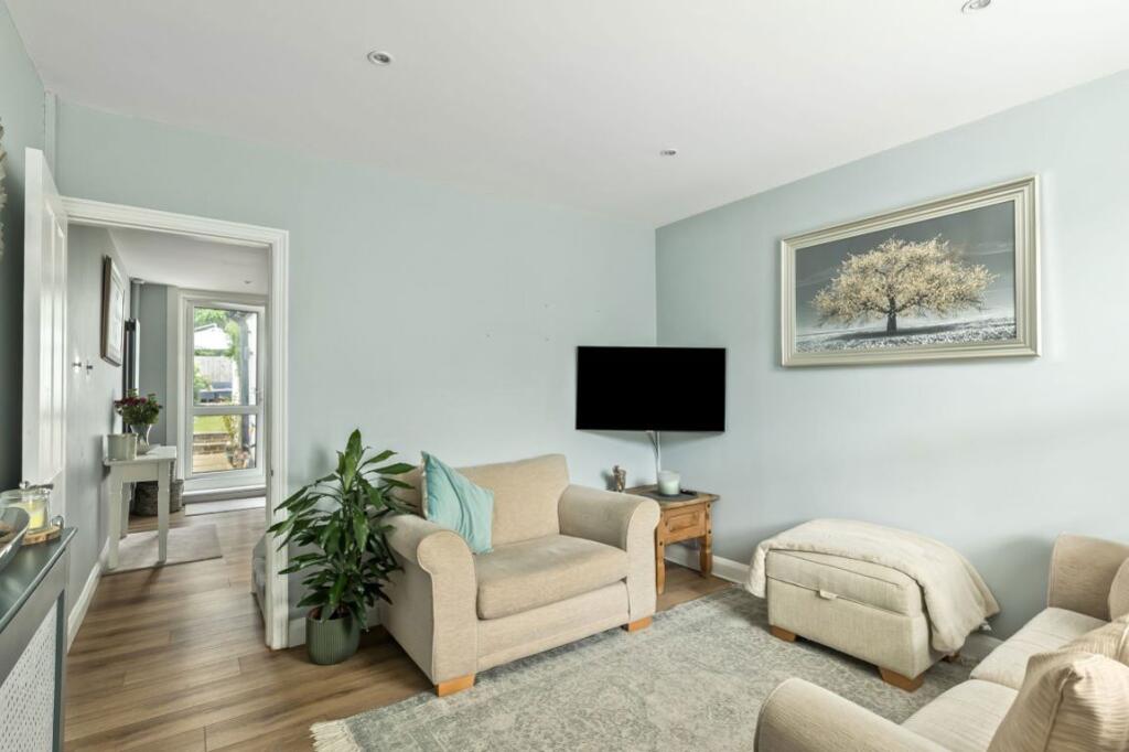 A well-presented two-bedroom end of terrace cottage, perfectly located in the sought-after village of Dunton Green. The property opens into a cosy sitting room decorated in neutral tones, leading through to a good-sized dining area with door opening directly onto the garden. Off the dining spa...