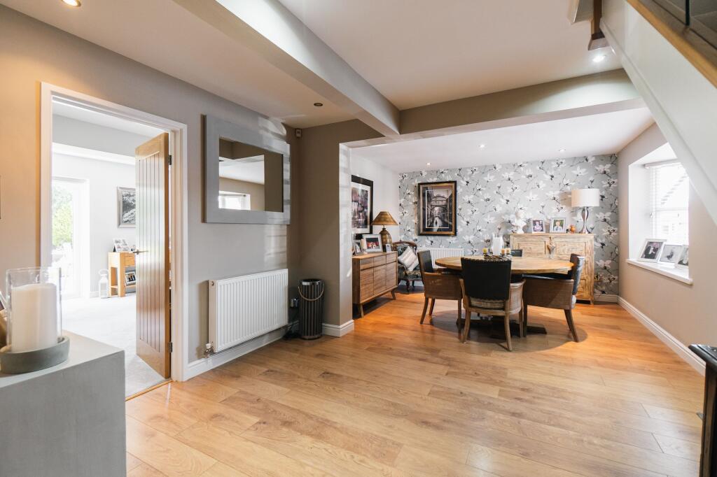 A contemporary family home with parkland views and expansive living spaces, set on a peaceful private cul-de-sac in Leicestershire. A standout family home.