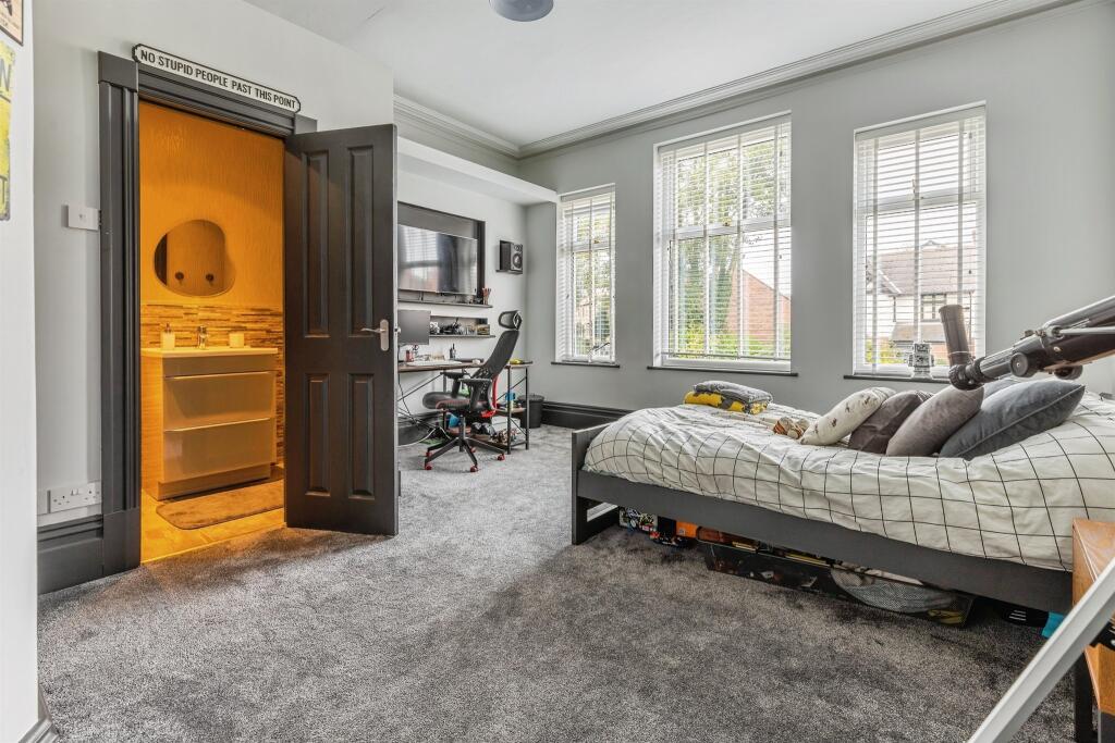 Stunning six-bedroom detached home, fully refurbished with premium finishes. Features spacious living areas, open-plan kitchen, luxurious master suite, extensive garden with patio, bar, and pond, plus ample parking and powered garage. A must-see for discerning buyers.