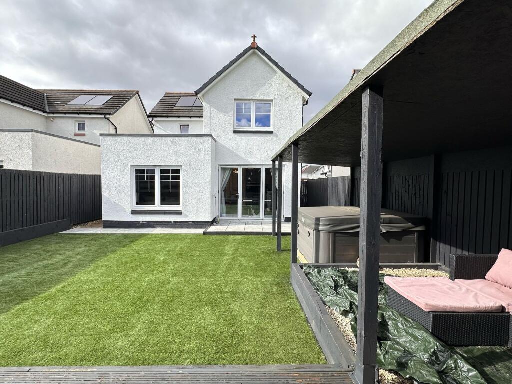 Gartcosh is a small town in North Lanarkshire, Scotland. The property benefits from being near Gartcosh train station, but further information on local amenities and schools is needed for a complete location assessment. The property is in excellent condition, with modern features and no visible signs of wear or needing repair. The garden is a substantial size, with artificial turf, a hot tub, and a covered patio. The list price is slightly above average, but is reasonable considering the property’s condition, size, and features.