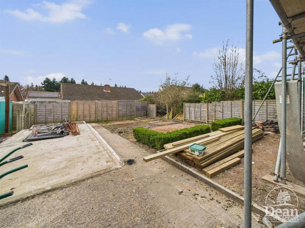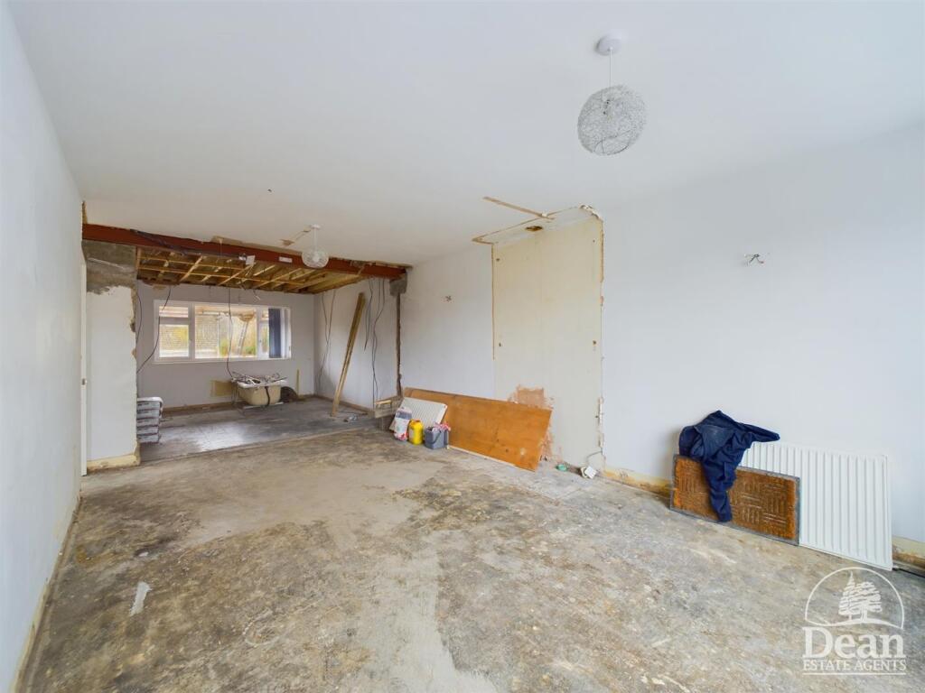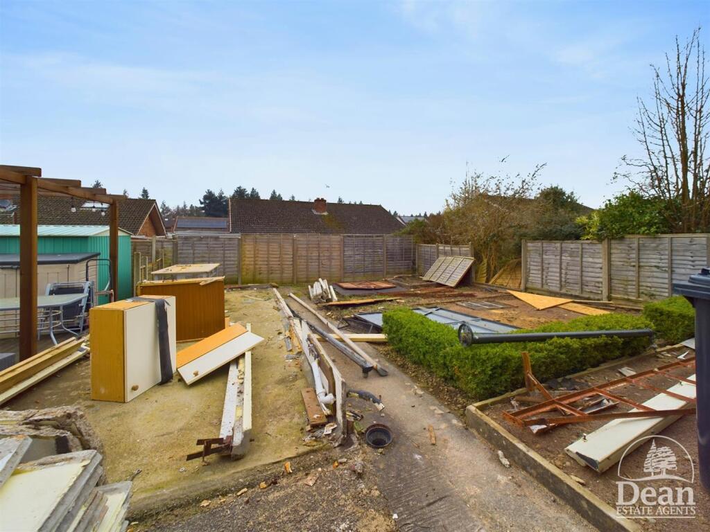 The property’s location in Lydney North offers proximity to several well-regarded schools, including Primrose Hill Church of England Primary Academy and The Dean Academy, both with a ‘Good’ Ofsted rating. Lydney train station is also within a reasonable distance, enhancing the location’s appeal. A garden is present but is currently in a state of disrepair and covered in building materials and debris.