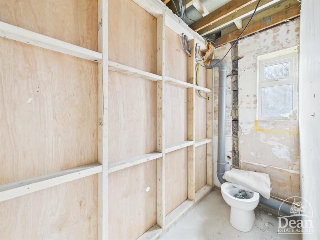 This 3-bedroom, 2-bathroom property in Charnwood Court, Lydney, is currently undergoing a major renovation. The listing photos reveal a property stripped bare to its structure. All rooms show exposed wiring, plumbing, and significant building materials, making it uninhabitable in its current state. While this offers the buyer the chance to completely customise the interior, it requires substantial financial investment to complete the project.
