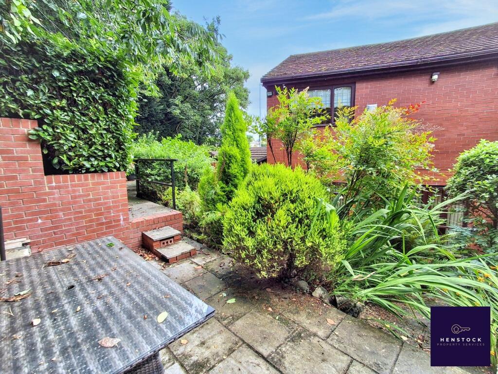 A detached property in Blackley, Manchester, featuring four bedrooms and two bathrooms. Close to schools and transport links. The interior is somewhat dated and could benefit from modernisation. The property has a garden with mature shrubs and trees.