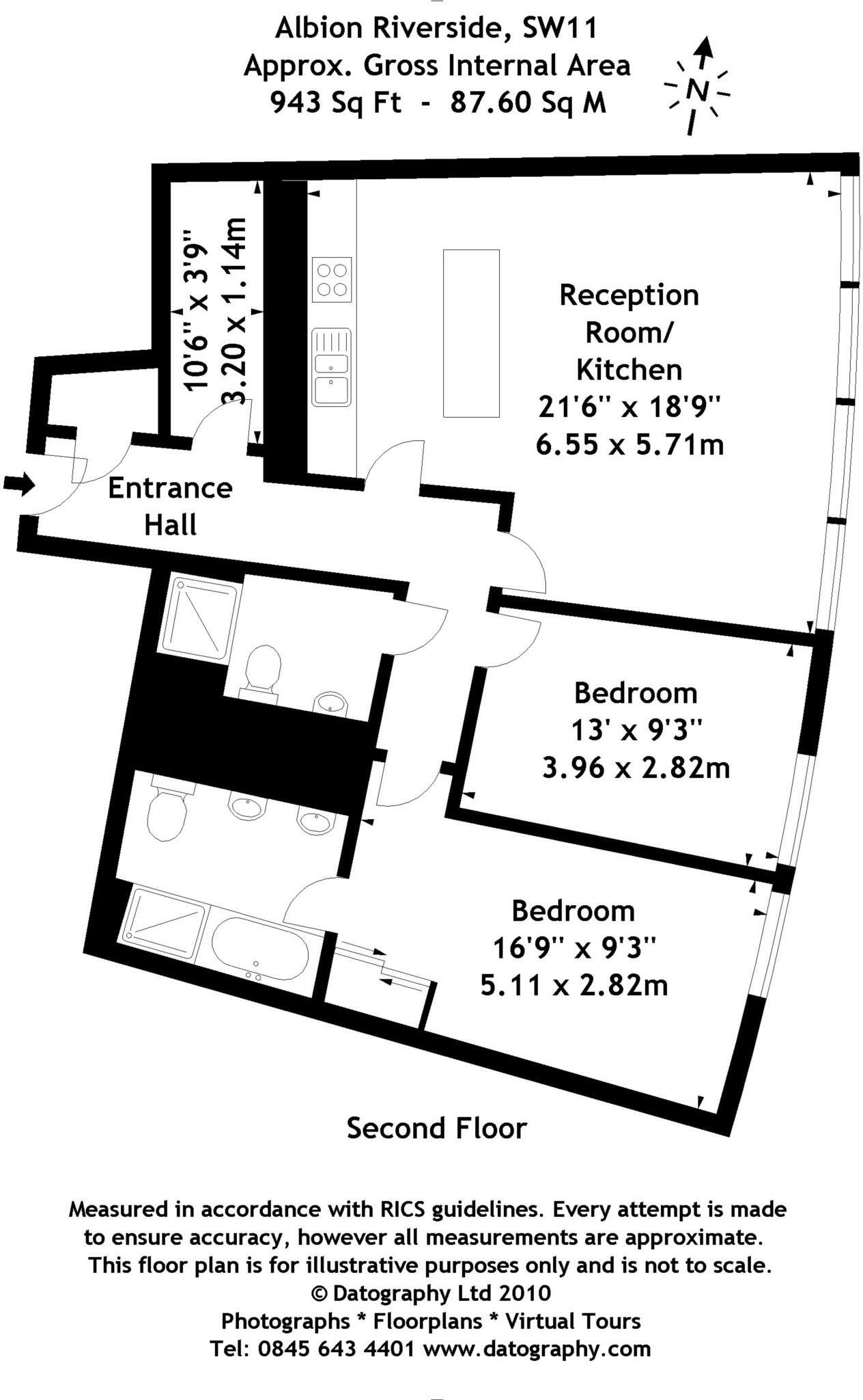 A spacious two bedroom apartment on the second floor of this iconic riverside development. The property comprises 943 sq.ft. (87 sq.m.) and has two double bedrooms and two bathrooms (one en-suite) with an open plan kitchen incorporating a breakfast bar and adjoining reception room.