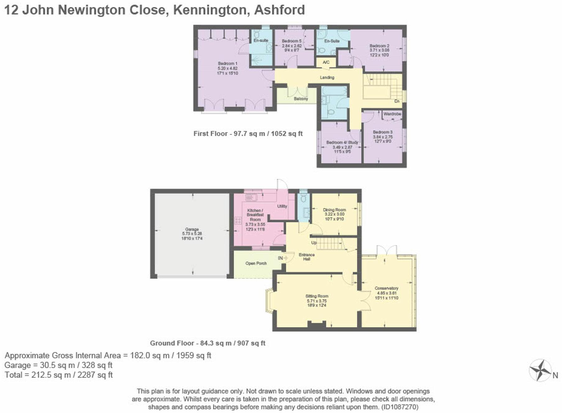 This five-bedroom, three-bathroom detached house is located in the sought-after Kennington area of Ashford, Kent, within close proximity to Ashford International Station. The property boasts a stylish interior with a modern kitchen and updated bathrooms. Photographs show a well-maintained home with attractive features, including a sizable conservatory and a substantial, landscaped garden. The double garage and additional parking offer convenience for a family. Although exact square footage and plot size details are not provided, the overall impression is of a spacious family home in a desirable location. The asking price appears competitive relative to similar properties in the area, although a more precise analysis would benefit from definitive square footage and a more thorough understanding of recent comparable sales in John Newington Close. Potential buyers should verify the square footage and independently assess the value against recent local comparable sales before making an offer.