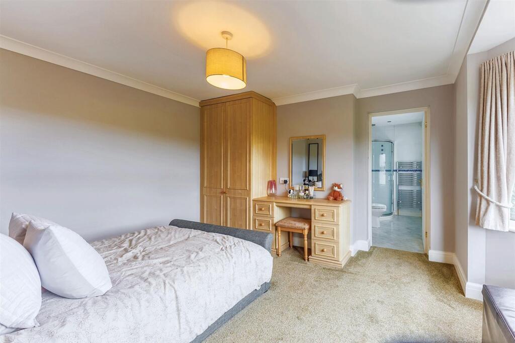 This is a detached property in Fladbury, Worcestershire, listed for £850,000. It features four bedrooms and four bathrooms. The property is in good condition, with a modern kitchen and bathrooms. It also has a large garden and ample parking. The property is located in a semi-rural area, close to local amenities and transport links. The average price in the area is £417,500, but this property appears to be of a higher standard than average. The property benefits from good nearby schools and transport links.