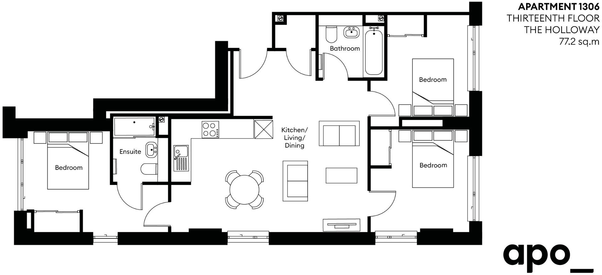 **3 Bedroom Apartment on 13th Floor** Available Now - City centre location| Free Wi-Fi | Co-working space | Brand New Furnished Apartments | Zero-deposit option| Residents Lounge | Event calendar | Roof Terrace | Host Team onsite 7 days a week | Parcel lockers
