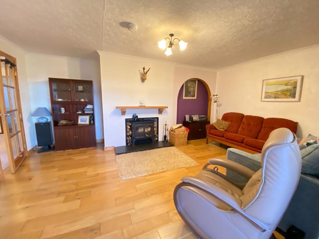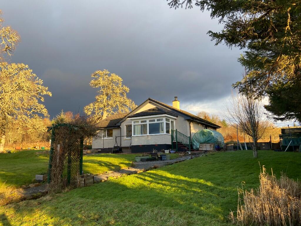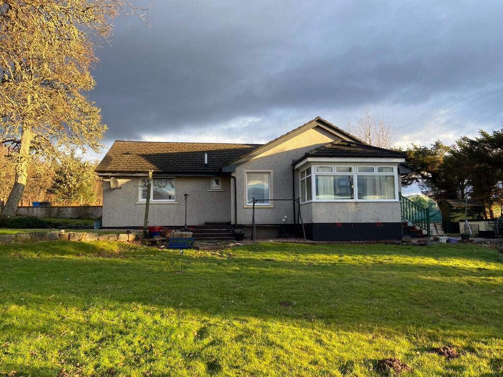 VIEWS! Det bungalow in a peaceful rural location with stunning open views over Loch Shin to the hills. Ent Vest, Hall, Living Rm, Sun Rm, Kitchen/Diner, Utility, 3 Beds, Bathrm & Shower Rm. DG, OFCH & Back-up Stove heating/water. Large garden with generous parking & wooden sheds. Close to walks.