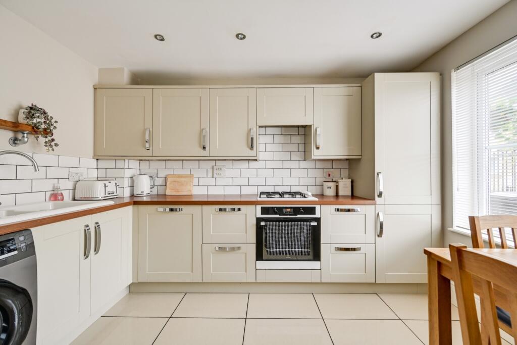 The property appears to be in excellent condition based on the provided images. The interior is modern and well-maintained, with updated fixtures and finishes. There is evidence of recent renovations or upgrades, suggesting that the property is move-in ready and does not require immediate repairs. The garden is well-maintained and of a reasonable size for a terraced property.