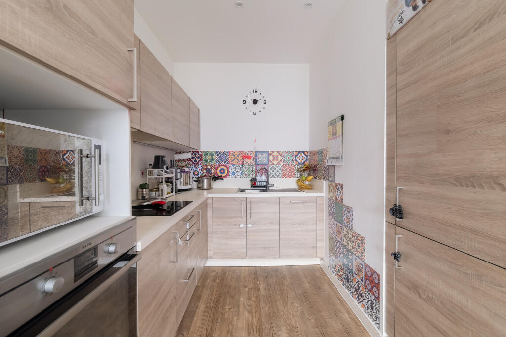 This is a one-bedroom flat in Royal Docks, London. The property appears to be in good condition, featuring a modern kitchen and bathroom. It includes a balcony and access to a communal garden. The location is well-connected with several schools nearby. The asking price is competitive for the area, making it an attractive opportunity for buyers.