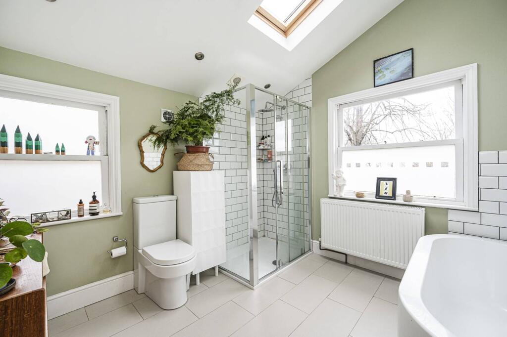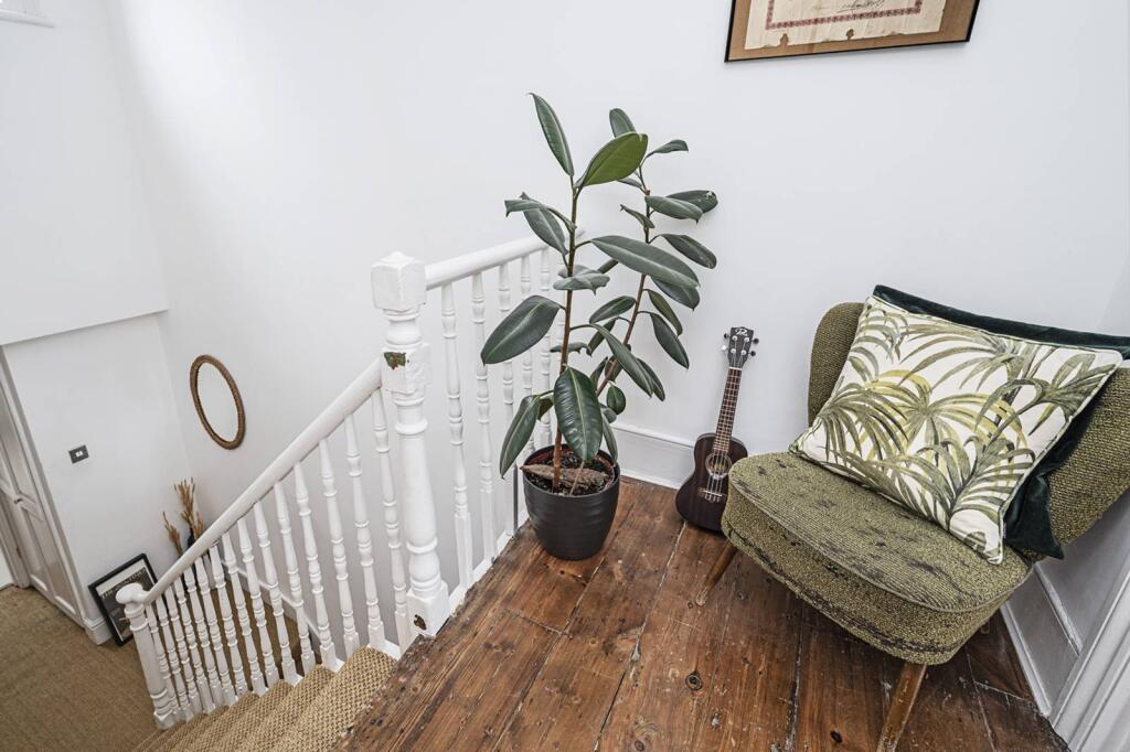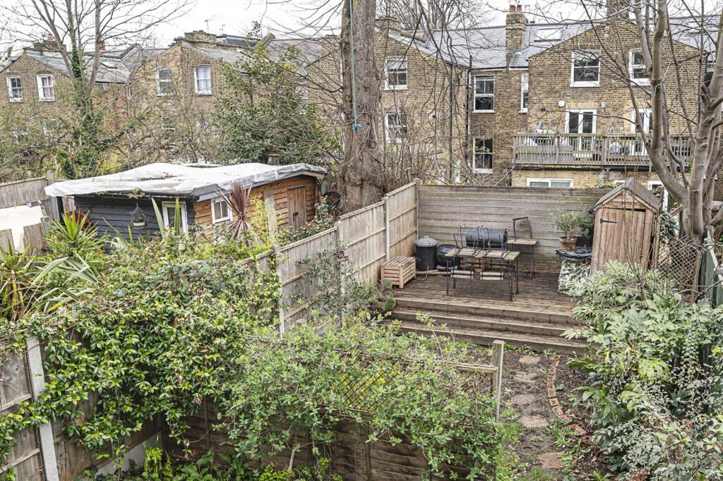 The property benefits from a sizeable garden, which is a significant advantage in a densely populated urban area like Stoke Newington. The garden includes a patio area, ideal for outdoor entertaining, and additional storage sheds.