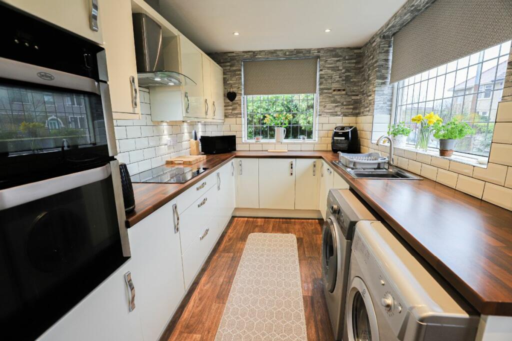 This four-bedroom semi-detached house in Bare, Morecambe, offers a spacious layout with three reception rooms, a conservatory, and a modern fitted kitchen. The property benefits from off-road parking and a garage, adding to its practicality. The inclusion of gardens on three sides is a definite plus, although the extent of the garden space is not explicitly defined. The interior photographs showcase a comfortable and well-maintained home, although the decor style is somewhat dated in places. The location is advantageous, offering proximity to the seafront and several well-regarded primary schools. Train connections to Lancaster and beyond are also within reasonable reach. While the property is not perfect, it presents a good overall package for families looking for a comfortable home in a convenient location. The lack of bathroom details in the initial property information is a notable omission. The price seems competitive within the context of similar properties in the area, although a precise price-per-square-foot analysis is hindered by the absence of detailed comparative data.