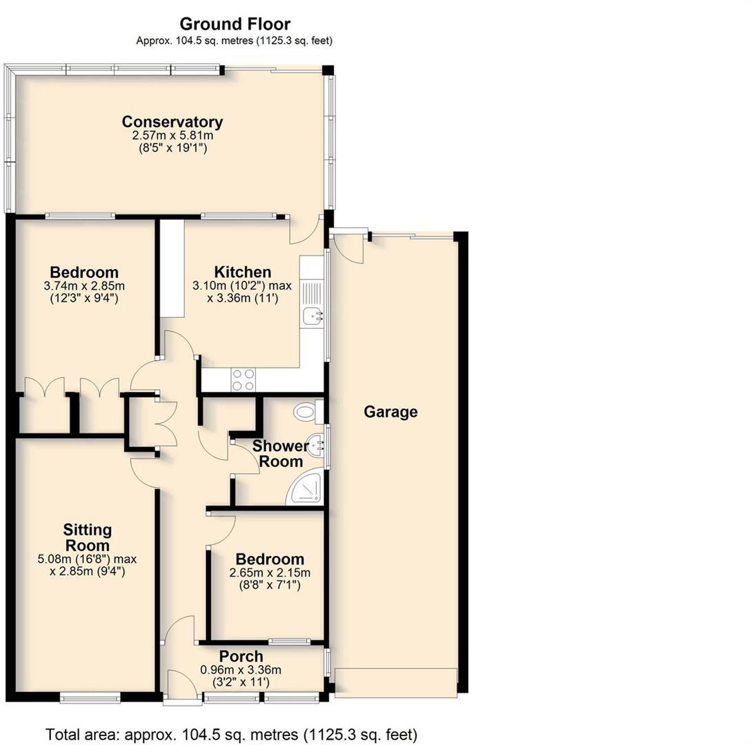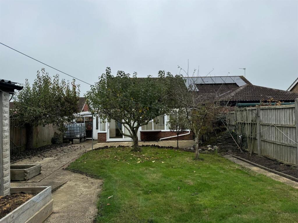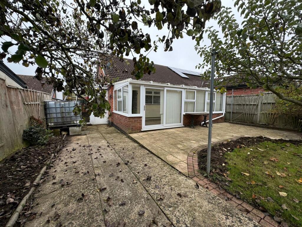 Semi-detached bungalow in quiet cul-de-sac, 2 bedrooms, fully tiled shower room with walk-in shower, well fitted kitchen and conservatory running the width of the property and over looking the garden. Single garage and off road parking. No Onward Chain.