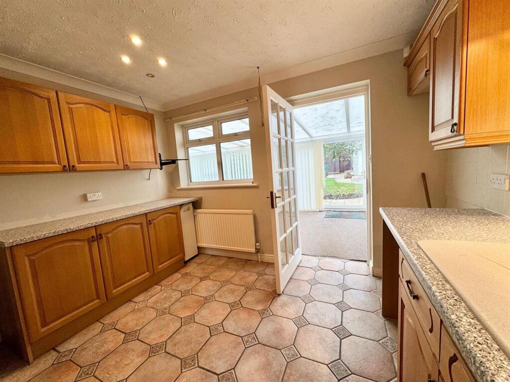 Based on the provided images, the property appears to be in generally good condition, although some areas could benefit from modernisation. The kitchen and bathroom appear well-maintained, but other rooms show signs of wear and tear, such as the carpets and some wall areas. The property benefits from a conservatory and a garage, adding value. The garden is of a reasonable size for a bungalow of this type.