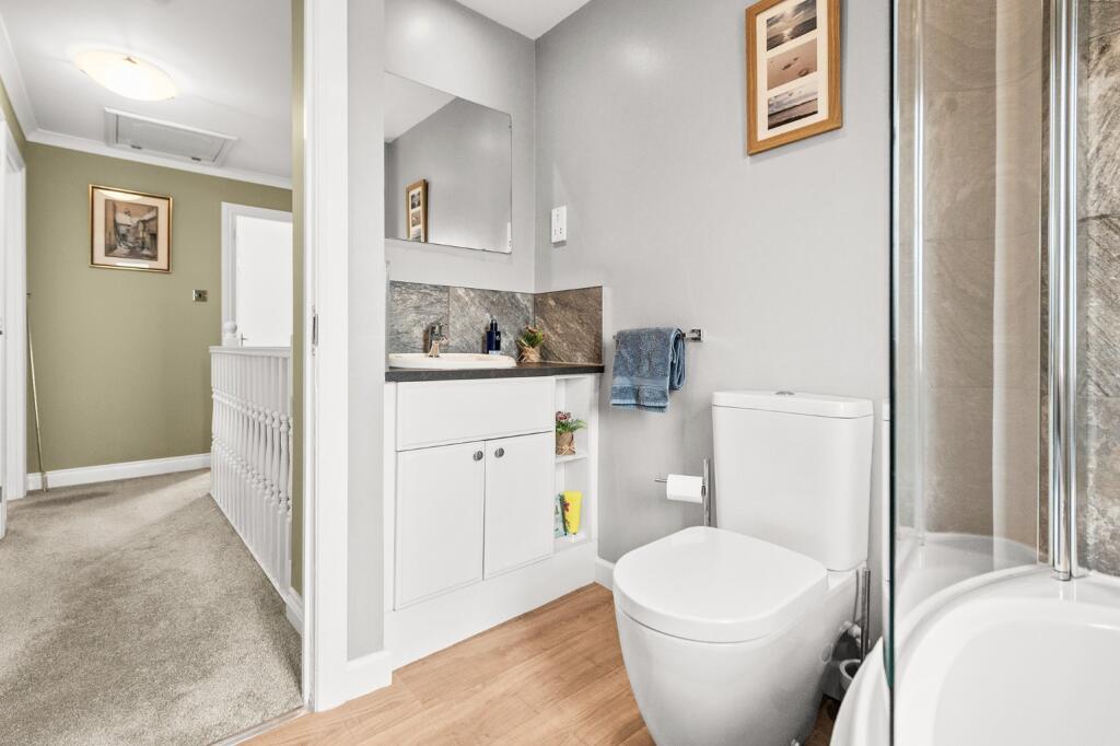 This is a detached villa in Bonnybridge, Falkirk, featuring four bedrooms and three bathrooms. The property appears to be in good condition, with modern interiors and a well-maintained garden. While the square footage is below the local average, the asking price reflects this. The property benefits from its location within commuting distance of major Scottish cities and proximity to local amenities.