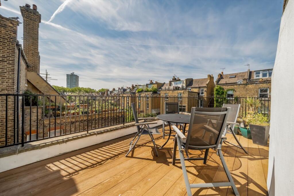 Over the top floors is this beautifully presented split-level, three-bedroom apartment featuring lovely high ceilings. The property has an impressive West facing 21 sq.m terrace that gets the sun all day and evening and is perfect for entertaining. Offered chain free, with a separate kitchen and ...