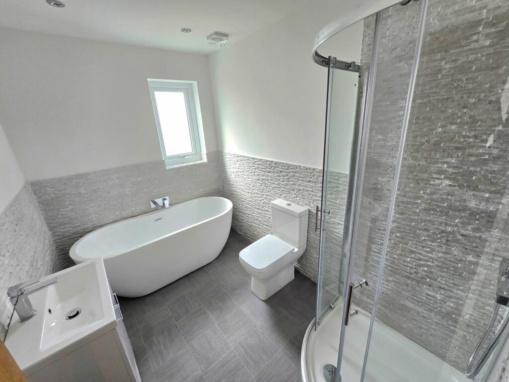 Brand new home, individually designed and built in 2022 to energy efficient modern standards. Stone fronted detached family home. Three bedrooms and four piece stylish bathroom to the first floor. Lounge with open plan stairs, kitchen/dining room with bi-fold doors to rear and cloakroom to the...