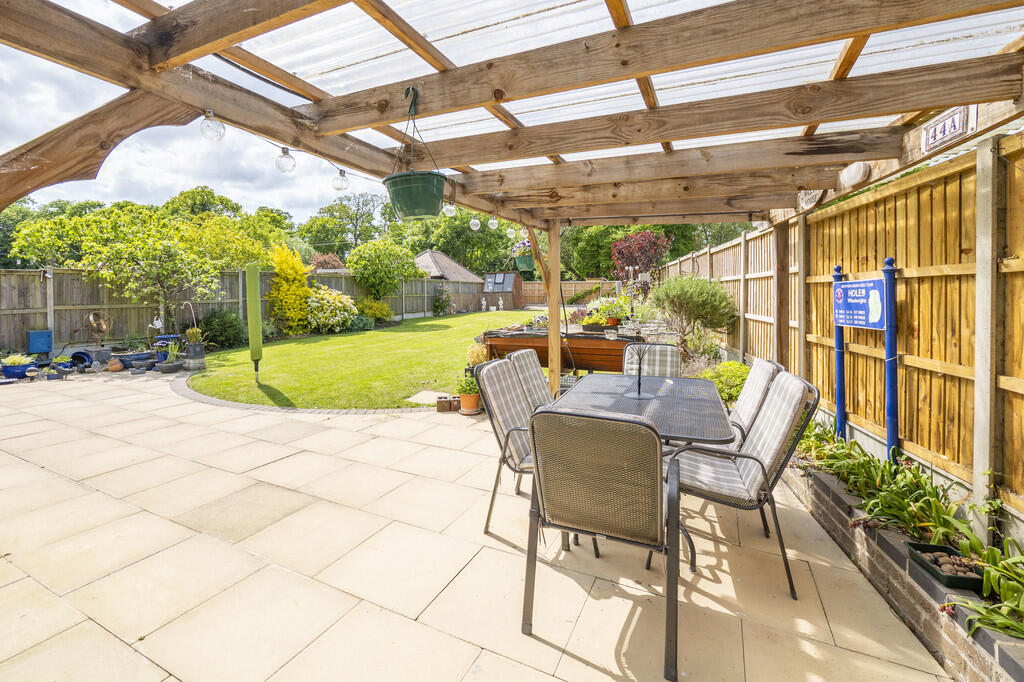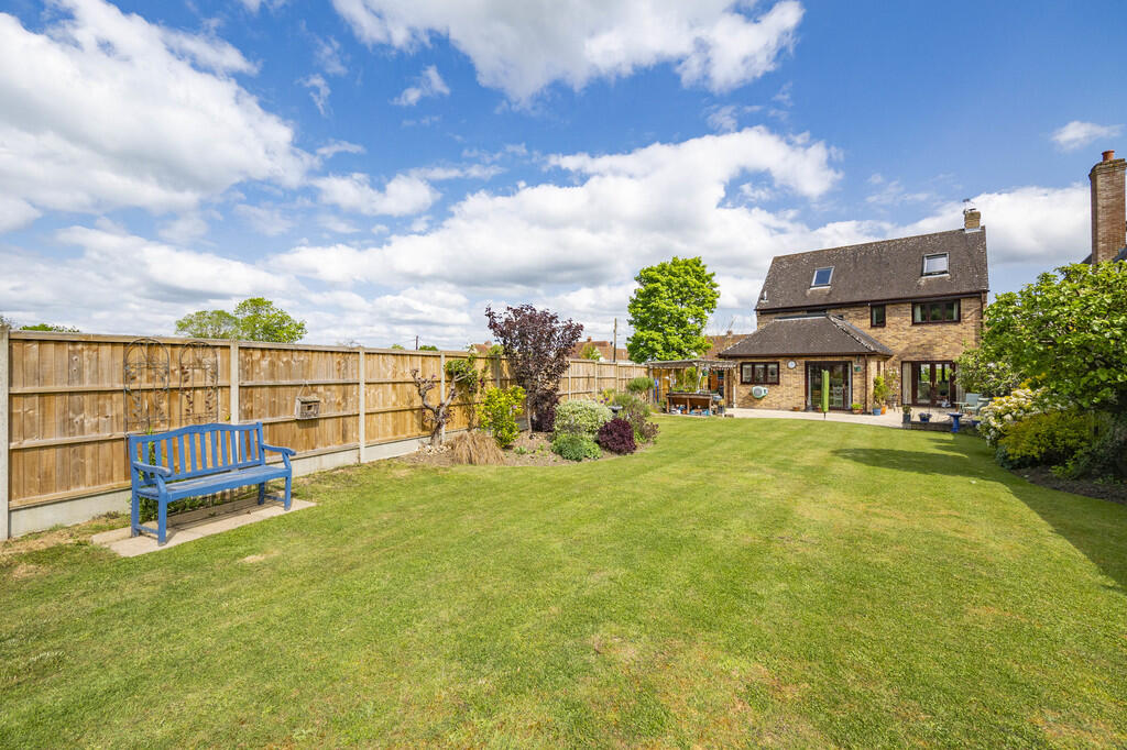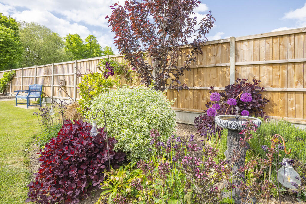The property benefits from a substantial garden, offering ample outdoor space. The garden includes a patio area, lawn, and various planted areas, providing both privacy and aesthetic appeal. The size of the plot is 2,031 square feet, which is relatively generous for a property of this type in the area.