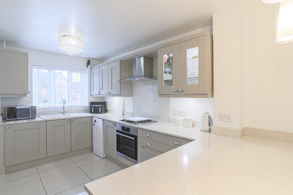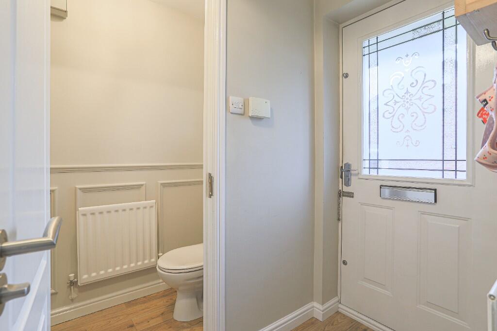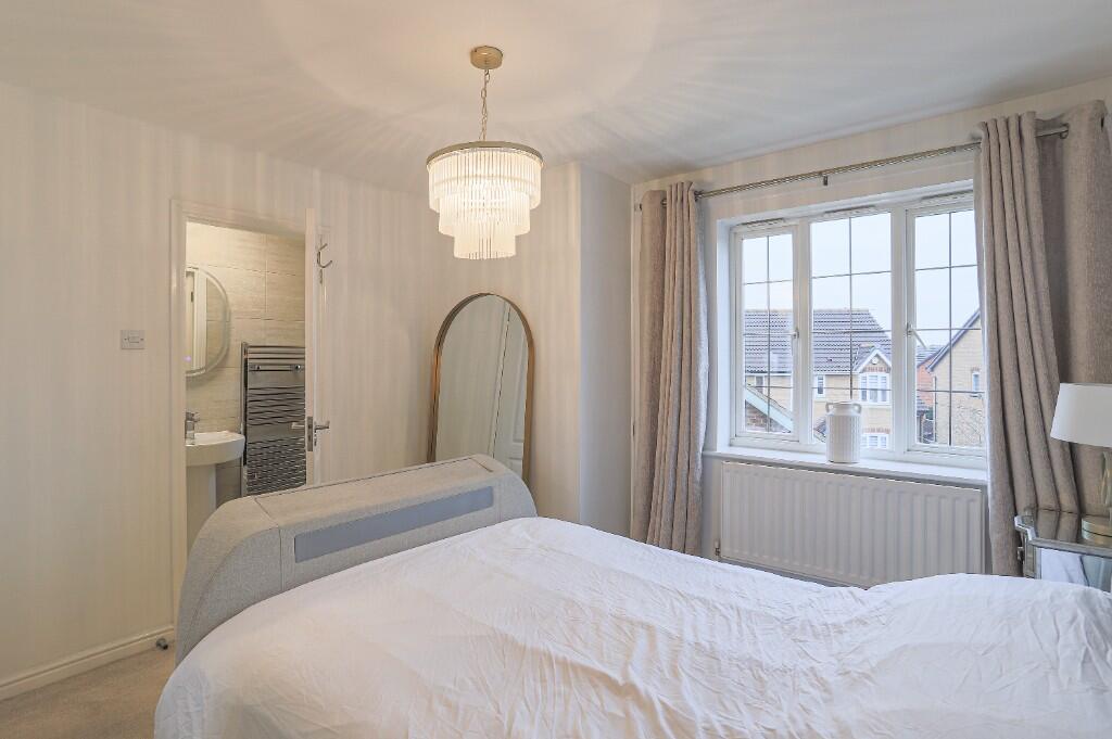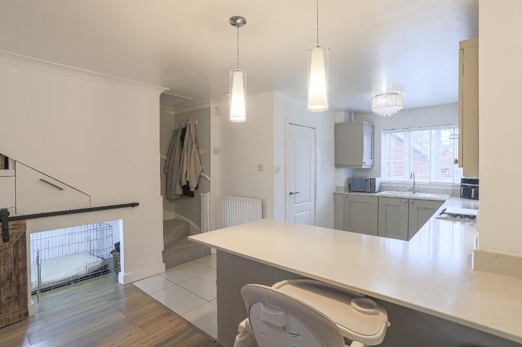 This beautifully presented modern three-bedroom semi-detached home features a welcoming layout with a hallway, downstairs WC, and a kitchen that flows into a lounge area. The property also includes a conservatory, a master bedroom with an en suite, two additional bedrooms, and a family bathroom.