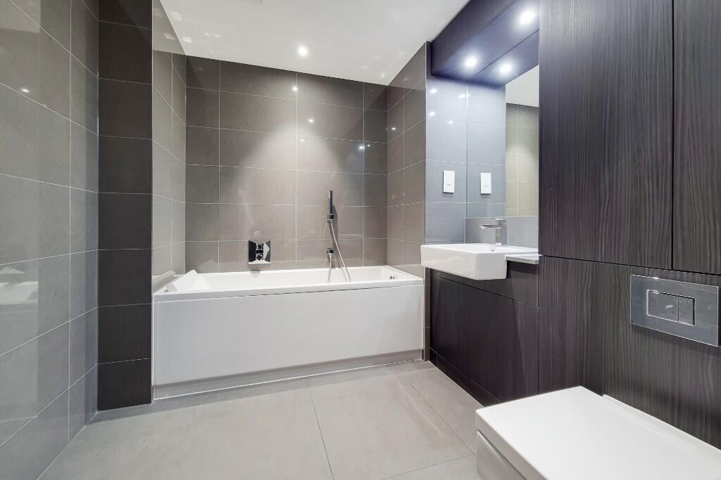 This unique two-bedroom, two bathroom apartment is arranged around beautifully landscaped gardens that blend in well with the elegance and refinement of the neighbouring Hampstead Heath. Hard wood flooring, contemporary bathrooms and fully integrated kitchens all add a touch of understated luxury.
