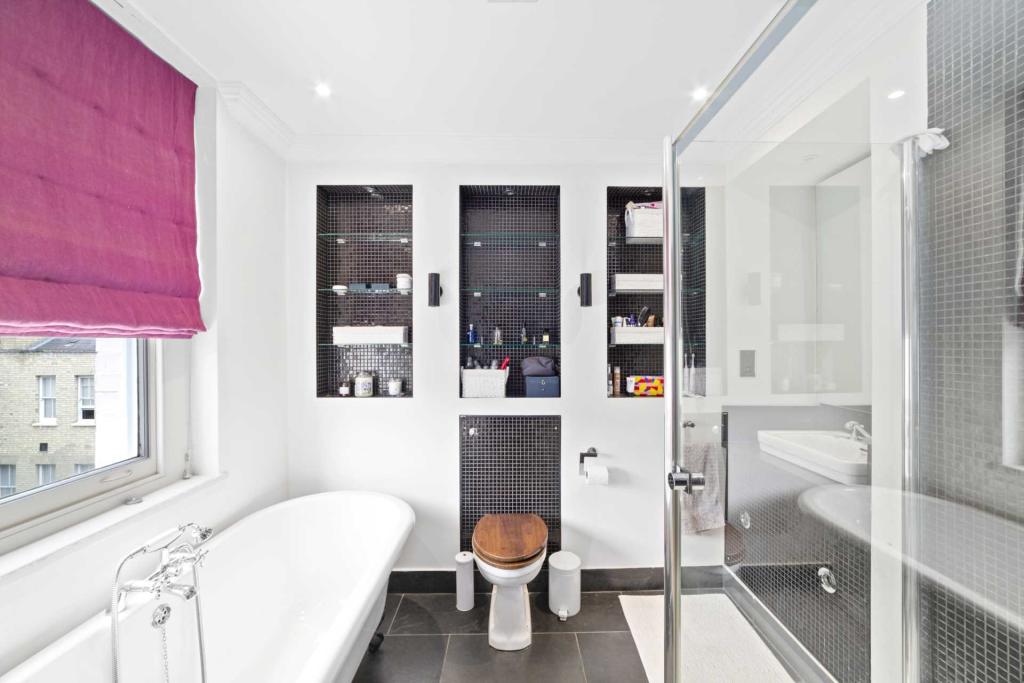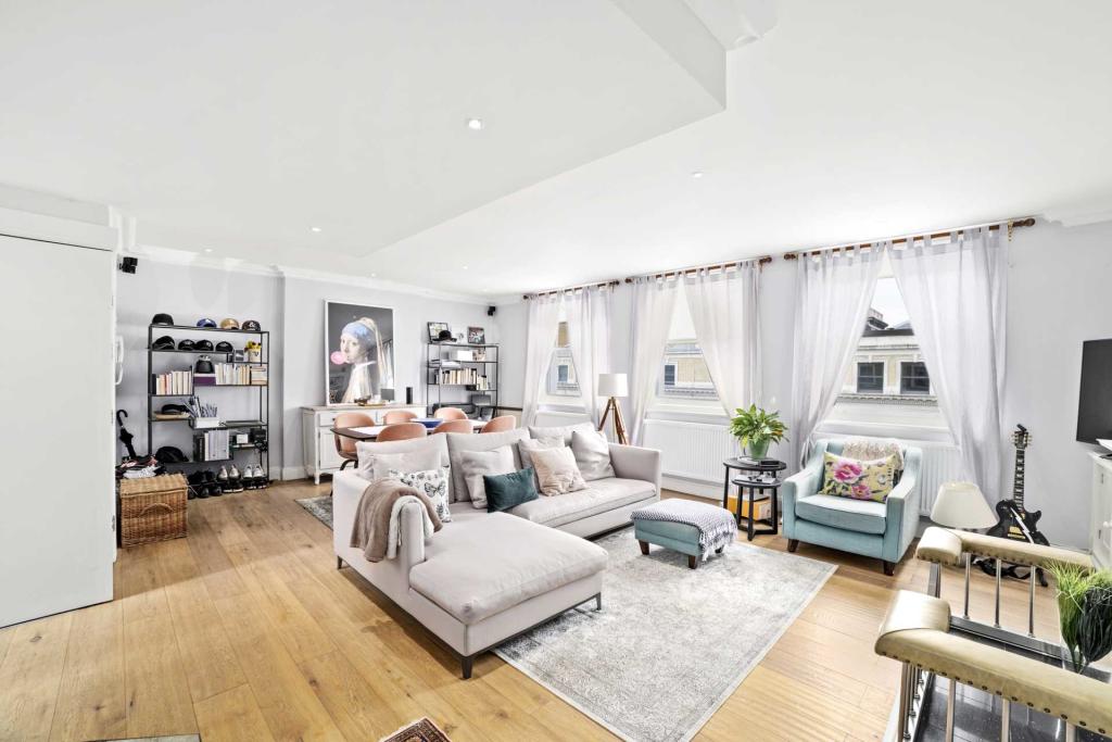 A fantastic top floor apartment (approx 1,066 sq ft) with a wonderful terrace situated in this smart period building (with lift) in the heart of Kensington opposite Kensington Gardens.