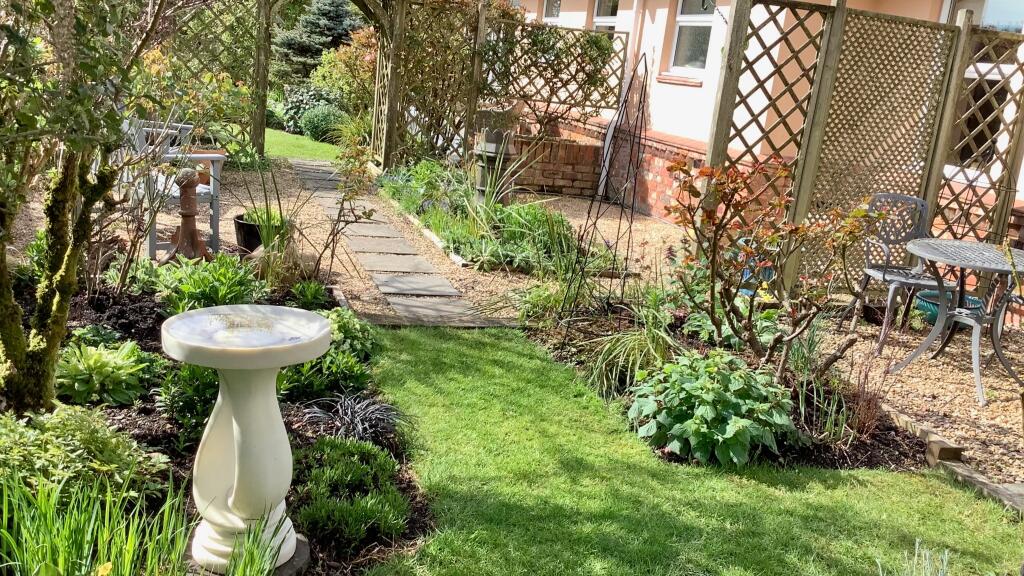 This property is a detached bungalow located in West Hill, East Devon. It boasts 4 bedrooms and 3 bathrooms, spanning over 2,031 square feet. The property sits on a plot of 2,488 square feet and is listed at £995,000. The average price for properties in the area is £799,667, with an average price per square foot of £324. This property is priced higher than the average, but this could be justified by its size, features, and condition. The nearby transportation links include train stations at Whimple (5.59km) and Feniton (7.59km). Several well-regarded schools are within a reasonable distance, including West Hill Primary School (0.80km), rated Outstanding by Ofsted. The property appears to be in excellent condition, with a well-maintained garden and modern interior finishes. The garden is a significant feature, offering ample space for relaxation and outdoor activities.