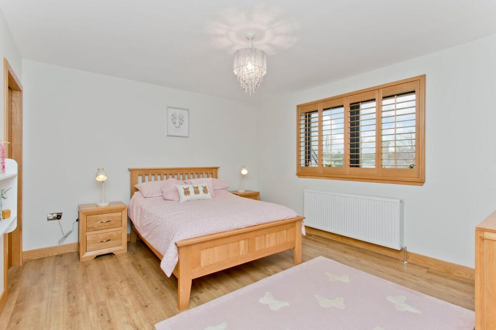 Scotcraig House is a substantial detached property located in the desirable coastal village of Elie, Fife. The house features five bedrooms and six bathrooms, making it suitable for a large family. The interior is modern and well-maintained, with high-quality fixtures and fittings. The property also benefits from a large garden, a detached garage, and ample parking. While the location is attractive due to its proximity to the coast and golf courses, it is relatively remote. The asking price of £1,250,000 appears high compared to the average property price in the area.
