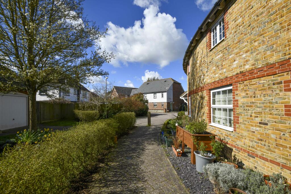 An immaculately presented stylish and modern three bedroom crescent shaped home in a tucked away cul-de-sac location in the semi rural village of Harrietsham, with an easy to maintain garden and car port.
