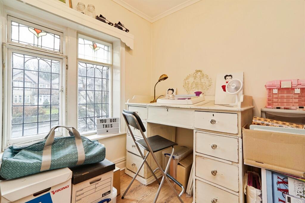 This is a semi-detached property located in Heaton, Bradford. It features four bedrooms and two bathrooms. The property appears to be a traditional build with some modern updates, but also areas that require renovation. It includes a garden and patio, offering outdoor space. The location is convenient, with nearby schools and transportation options. The price is slightly above the average for the area, but may be justified by the size and features of the property.