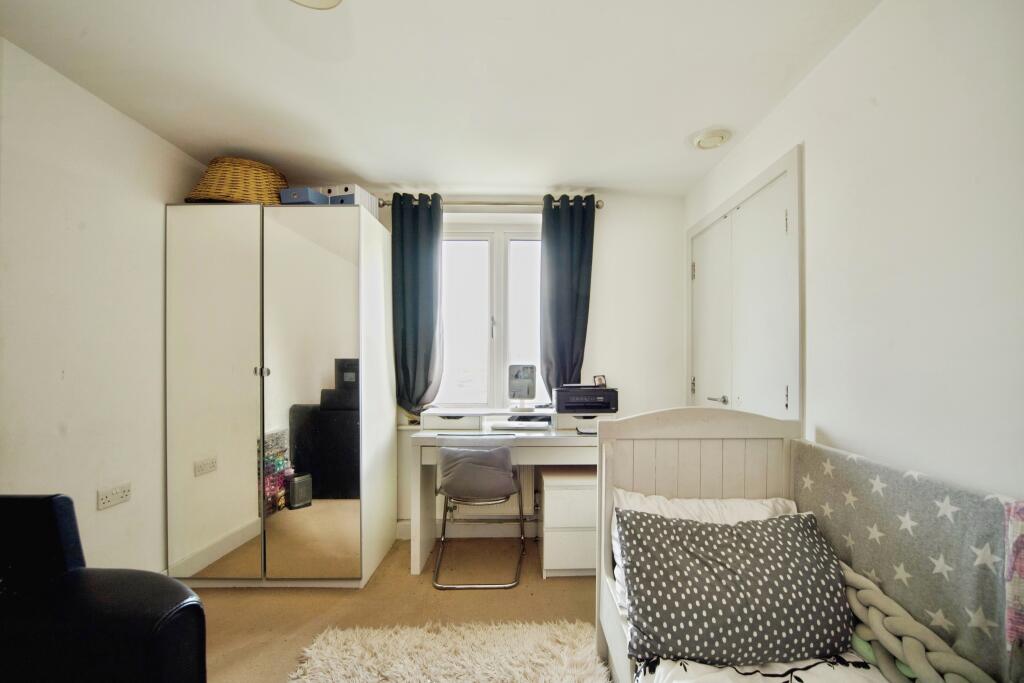 This one-bedroom flat on Poppy Drive in Enfield presents a solid opportunity for first-time buyers or investors. The property is in generally good condition, with a modern kitchen and bathroom. While the bedroom shows some signs of wear, the overall condition is acceptable. The location offers good transport links and proximity to schools. The lack of private outdoor space is a drawback, but communal gardens are available. The asking price of £110,000 seems very attractive, given the local market and average price per square foot.