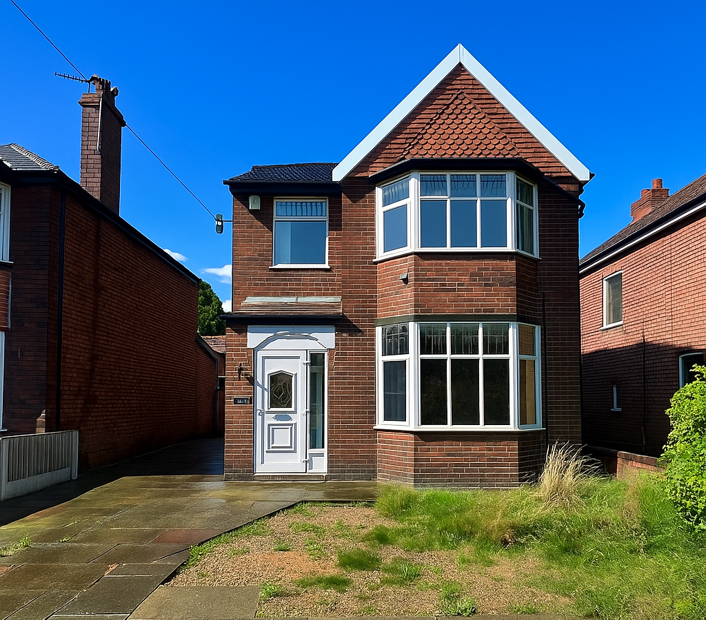 Located on the ever-popular Green Walk in Stretford, this three-bedroom detached home offers spacious accommodation, a generous plot, and excellent potential to create a truly stunning family residence. Ideally positioned close to well-