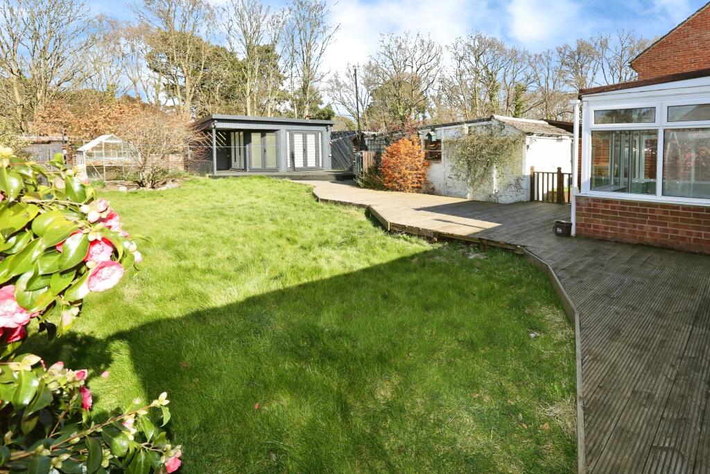 The property includes a good-sized garden, offering additional outdoor space. The plot size is slightly above average for the area.