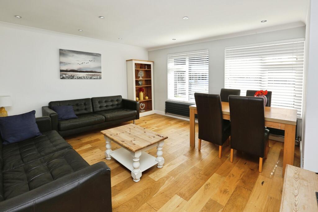 Based on the provided images, the property appears to be in good condition. The interior is modern and well-maintained with recently updated flooring and a contemporary kitchen and bathroom. There is evidence of recent renovations and modernisation. The exterior also appears well-maintained with a neat garden and a recently constructed garden shed.