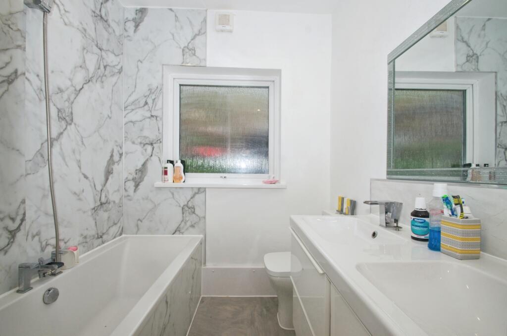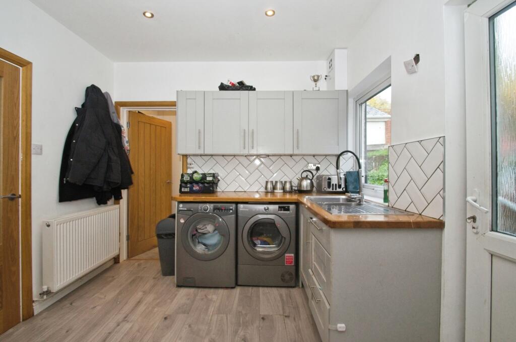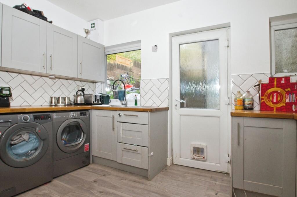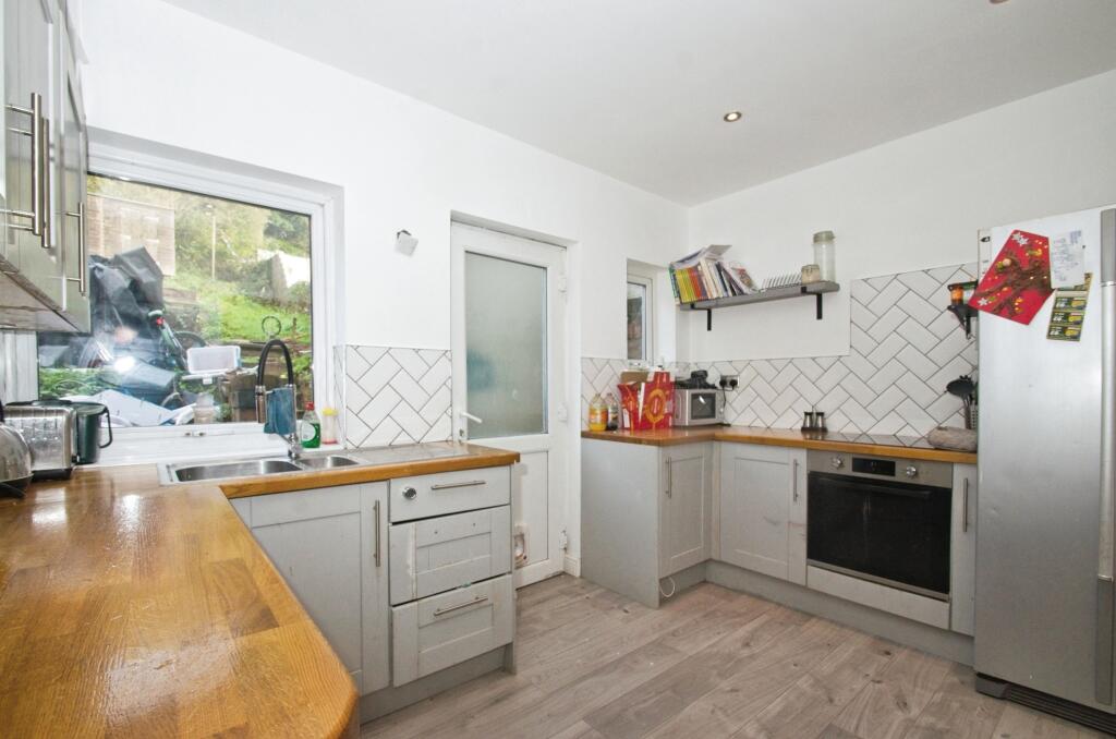 This three-bedroom terraced house in Penarth, South Glamorgan, is listed at £270,000. The property boasts a recently modernised kitchen and bathroom, presenting a clean and contemporary aesthetic. The kitchen features modern grey cabinets, wood countertops, and herringbone-patterned tile backsplash. The bathroom showcases a similar modern design with marble-effect wall panelling. The living area is spacious with large windows letting in plenty of natural light. The bedrooms are of decent size, although the provided images reveal some areas that could benefit from decluttering and minor cosmetic improvements. The property’s exterior is typical of terraced houses in the area. A notable aspect is the garden, which, while present, is currently unkempt and requires significant landscaping. The presence of a shed suggests potential storage space. The property’s proximity to Cogan train station and several schools adds to its appeal. Overall, the property presents a good opportunity for a family or individual looking for a home in the Penarth area. However, potential buyers should factor in the cost of landscaping the garden and any minor cosmetic upgrades they may wish to undertake.