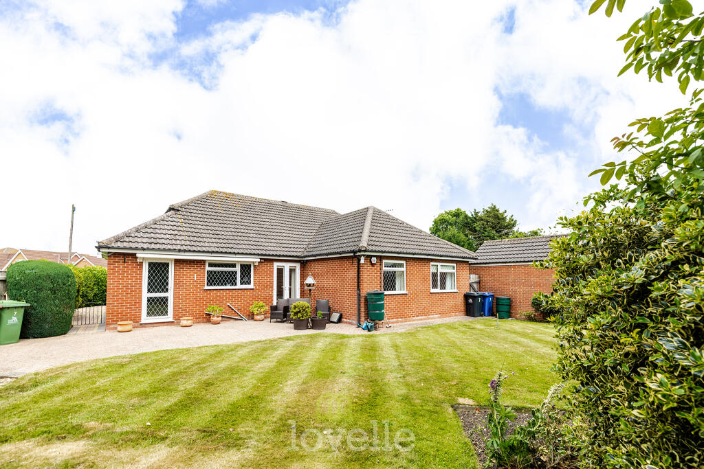 Beautifully presented detached bungalow in New Waltham with south-westerly gardens, spacious living, three bedrooms, modern kitchen, and garage. No chain. Versatile layout throughout.